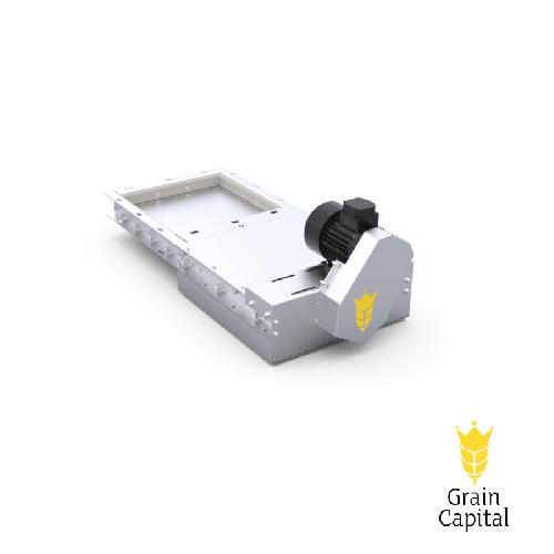 Автоматична гвинтова заслінка ZEO-MA призначена для регульованого випуску зернових або сипучих матеріалів з накопичувальних ємностей, бункерів, складів чи зернохранилищ. Мотор-редуктор приводить тяговий гвинт, який забезпечує переміщення шибера (відкриття/закриття) заслінки.